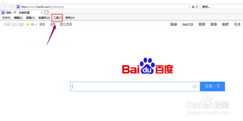 進(jìn)入瀏覽器首頁點擊上方的工具,如下圖所示