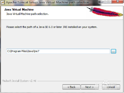 選擇tomcat的安裝位置,可以默認(rèn)安裝,也可以自定義安裝。這里我選擇自定義。