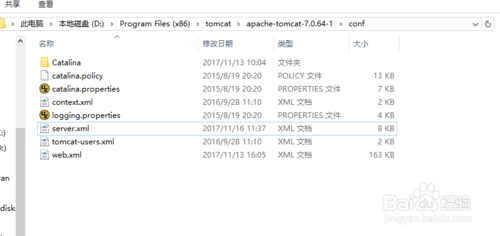 tomcat的所有的配置文件都是在conf目錄下