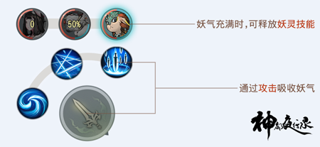 那么如何使用妖氣呢?各個妖靈當(dāng)前的妖氣值會顯示在該妖靈的妖靈技能按鈕上。當(dāng)某個妖靈的妖氣值積攢到上限后,就可以使用該妖靈的妖靈技能。而一旦使用妖靈技能,將會消耗該妖靈的全部妖氣值。
