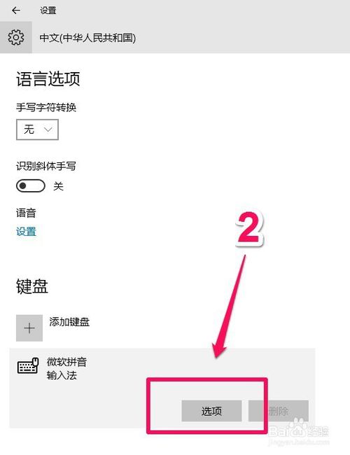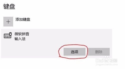 “鍵盤(pán)”選項(xiàng)中打開(kāi)“微軟拼音輸入法”,再點(diǎn)擊打開(kāi)“選項(xiàng)”