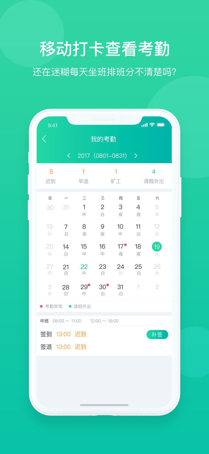 薪人薪事,專業(yè)的云人事APP。為員工提供便捷的簽到方式,