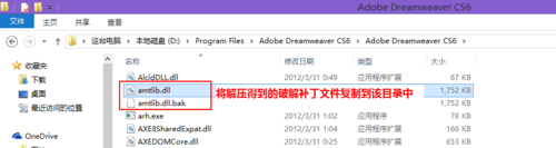 4、將解壓得到的破解補(bǔ)丁文件復(fù)制到Dreamweaver的安裝目錄中