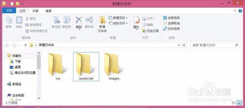 2、打開新建的文件夾,在文件夾中新建三個(gè)文件夾。分別命名為css、JavaScript,images。