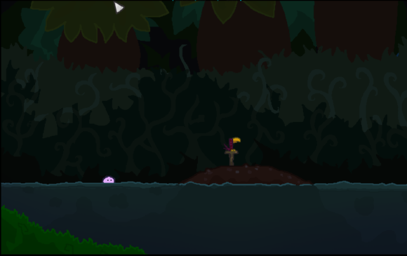 然后往回走小房子前面有個(gè)水坑,跳下去按住s可以潛水