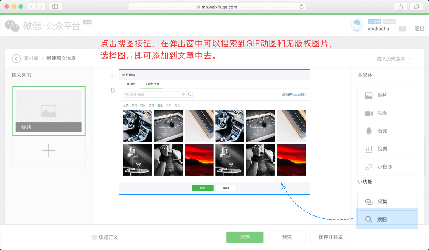 針對微信公眾平臺(tái)的十幾項(xiàng)功能優(yōu)化可以讓你直接在微信公眾號(hào)的后臺(tái)完成文章的找圖、