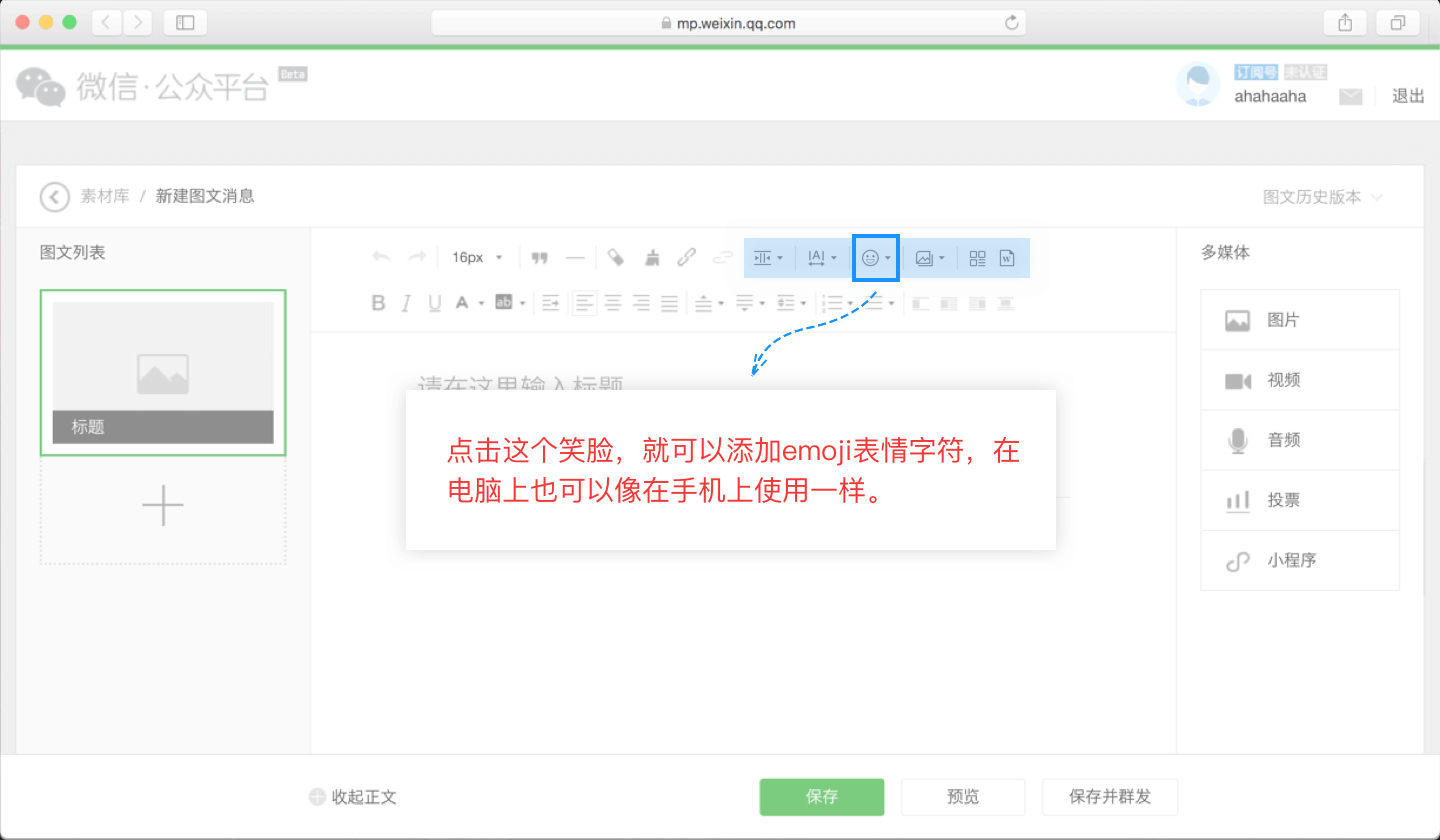 支持在文章中內(nèi)加入emoji表情以及特殊符號(hào)