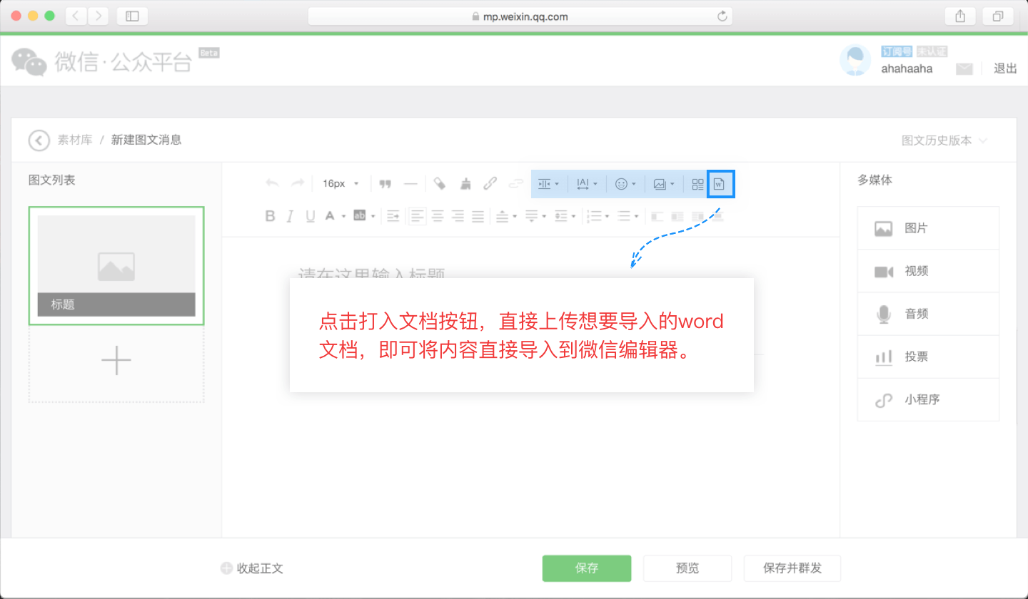 支持直接導(dǎo)入word文檔到微信公眾號(hào)后臺(tái)