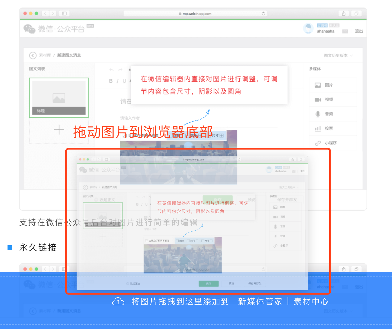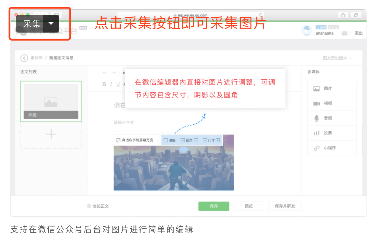 支持在微信公眾號(hào)后臺(tái)對圖片進(jìn)行簡單的編輯