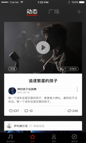 關(guān)注你喜愛的音樂人,可以率先聽到他們的新鮮音樂創(chuàng)作,觀看音樂人分享的創(chuàng)作片段。