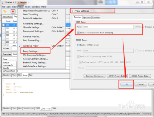 在移動設(shè)備上安裝證書,首先點(diǎn)擊proxy—>proxy settings...端口修改為8888,如下圖所示: