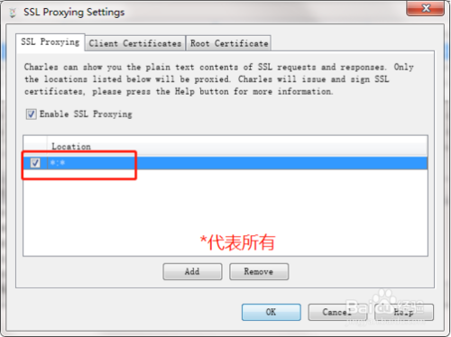 最后一步,啟動HTTPS捕捉 點(diǎn)擊proxy——SSL proxying settings——設(shè)置通配符 * *,如下圖所示:2