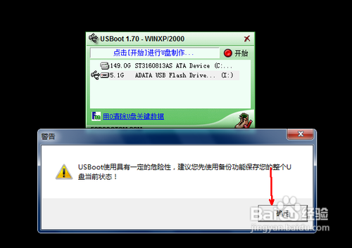 5、點(diǎn)擊之后還會有一個(gè)確認(rèn)的對話框,這個(gè)要提醒你注意,如果你的U盤中尚有未備份的重要文件,進(jìn)行此操作過后會全部刪除,所以,一定要提前做好備份。