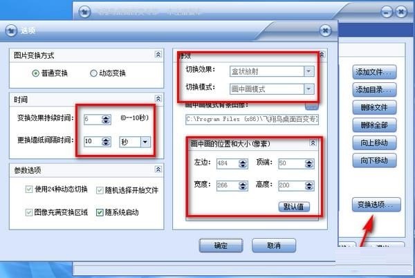 4、您可以自由設(shè)置變換時(shí)間、變換方式、變換等待時(shí)間、變換內(nèi)容等等。