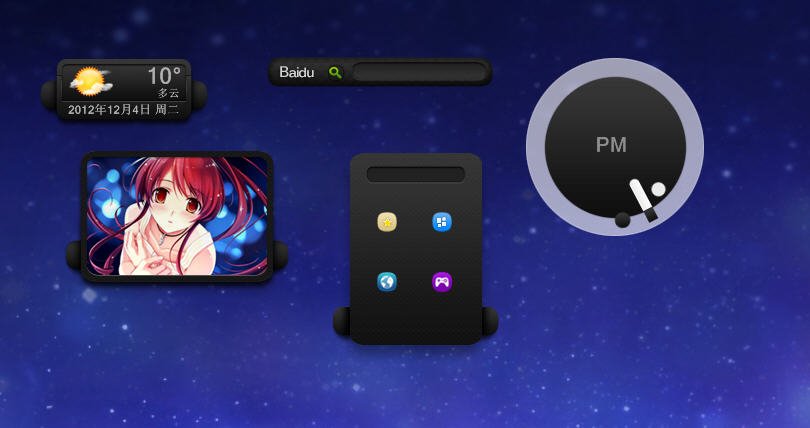 上面各種小工具的效果圖~大家可以根據(jù)需要下載。其中第三個(gè)的玻璃球快捷方式應(yīng)該是非常熱門的簡(jiǎn)單小工具了~~還有電子表,日歷,音樂(lè)播放器等等~