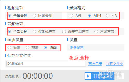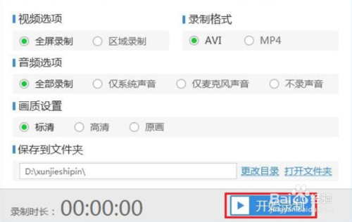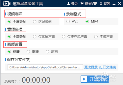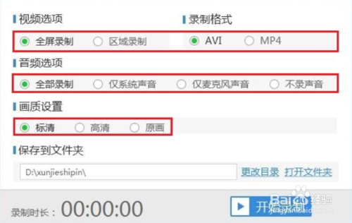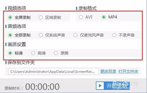 啟動軟件后,設(shè)置視頻、音頻、格式、畫質(zhì)等,就可以開始進行錄制了。