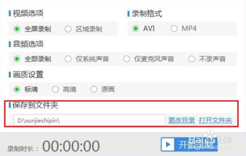 接著設(shè)置錄制視頻所保存的位置,不建議保存在C盤,可根據(jù)實際情況安裝在D盤或者F盤,本作者安裝在了D盤。