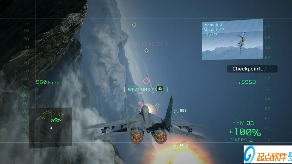 覆蓋面積隨距離增加而增加,近距離判定范圍甚至不比HAWX1的火箭彈小多少。4000M左右面對(duì)6機(jī)炮吊艙的A10感覺(jué)如同抬頭看雨。
