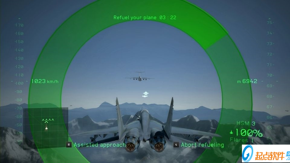 打下來(lái)之后就是空中加油的部分, 空中加油也和降落一樣可以由系統(tǒng)輔助, 開(kāi)不開(kāi)就見(jiàn)仁見(jiàn)智了, 個(gè)人認(rèn)為難度不低,還有時(shí)間限制.