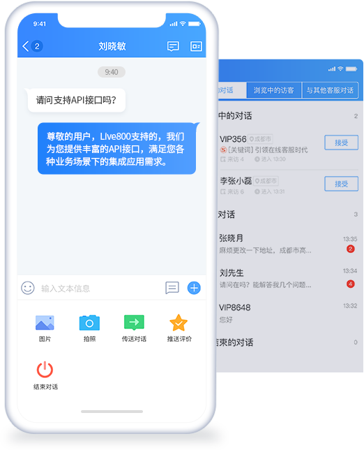 輕松與企業(yè)的網(wǎng)站用戶系統(tǒng)對接,整合用戶信息到Live800??头砂踩R別企業(yè)新老用戶,在服務中無縫查看注冊信息、身份等級、購買記錄等用戶資料。不僅能提高工作效率,還能幫助客服以最高效的方式識別訪客,提供更好的有針對性的服務。
