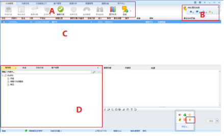 系統(tǒng)主要分為操作工具欄(A)消息中心(B)對話界面(C)常用語等快捷回復(D)