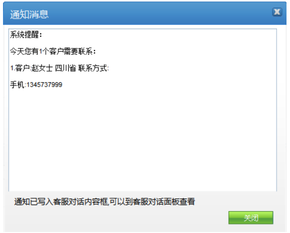 消息框和顯示在客服面板2種方式提醒客服人員聯(lián)系該客戶。