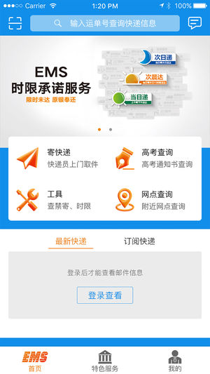 EMS快遞是一款中國(guó)郵政速遞物流有限公司旗下的iPhone手機(jī)客戶端。用戶可以通過使用EMS來查看自己的快遞距離自己還有多遠(yuǎn),同EMSiPhone版還能快速下單,讓用戶能夠在家里就把快遞寄出去。