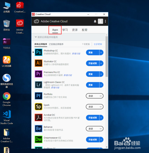 最后可以再次打開(kāi)Adobe Creative Cloud試試了,這時(shí)問(wèn)題應(yīng)該解決了,只要登錄進(jìn)去后就可以顯示下面的界面了