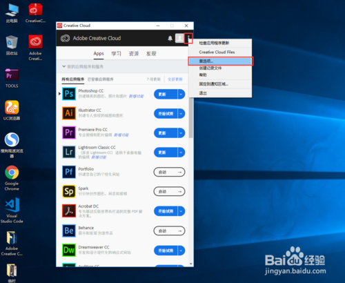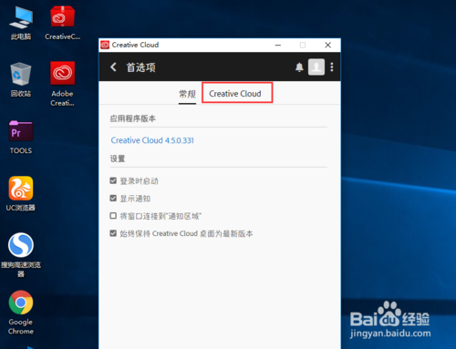 彈出以下對(duì)話框如下圖,在對(duì)話框中選擇首選項(xiàng),選擇Creative Cloud;