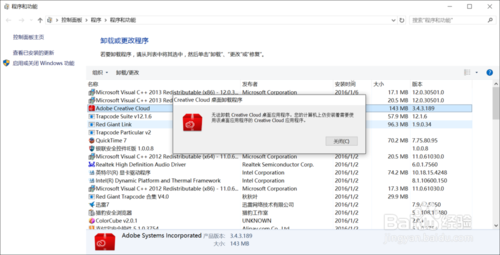 不管我們用電腦的卸載程序還是用360等各種軟件,在卸載AdobeCreativeCloud時(shí),總會(huì)出現(xiàn)下面的對(duì)話框