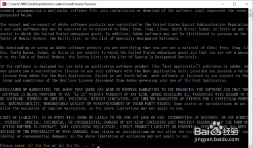 確定后出現(xiàn)下面的文字,問(wèn)你要卸載AdobeCreativeCloud還是卸載所有可卸載的軟件。按鍵盤(pán)輸入1 然后按enter鍵確定。又多出一行文字,輸入y 再輸入Enter確認(rèn)卸載。