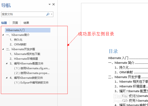 成功顯示左側(cè)目錄