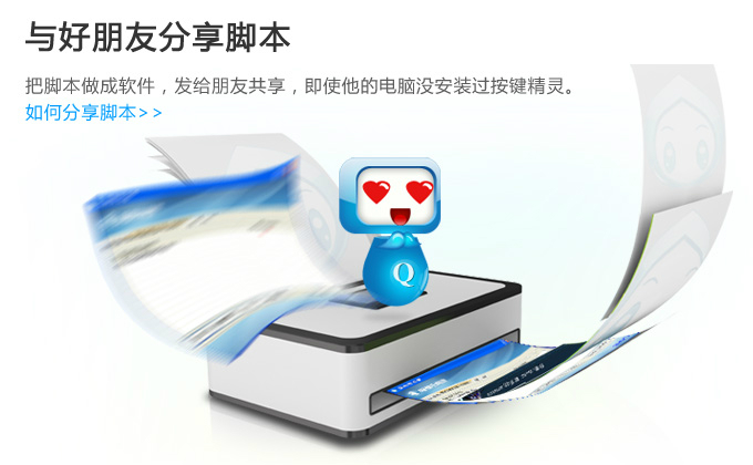 3、與好朋友分享腳本:把腳本做成軟件,發(fā)給朋友共享,即使他的電腦沒安裝過按鍵精靈。