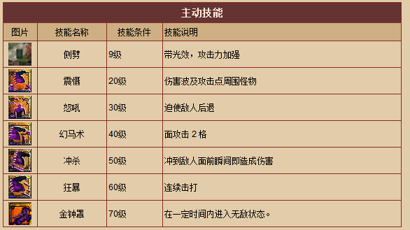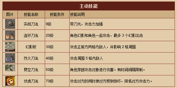 -- 職業(yè)概述(戰(zhàn)士) --長(zhǎng)期的格斗生涯使他們有強(qiáng)壯的體魄,用刀劍為武器,攻擊力強(qiáng)大,在近身肉搏中無(wú)人能擋。生命力在所有職業(yè)中是最旺盛的,能正面挑戰(zhàn)兇惡的怪物。在國(guó)戰(zhàn)中構(gòu)成刀斧手方陣,是攻擊的主力。