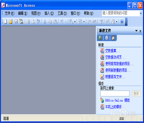 首先啟動(dòng)access200,執(zhí)行文件-新建命令,從右邊的新建文件中選擇空數(shù)據(jù)庫選項(xiàng)。