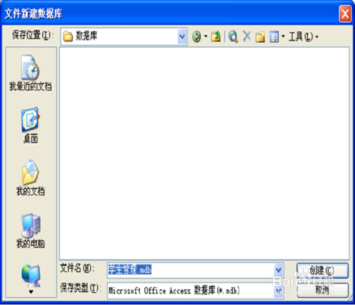 然后我們點(diǎn)擊保存按鈕,保存新建的Access數(shù)據(jù)庫;,保存文件對(duì)話框如下圖所示;