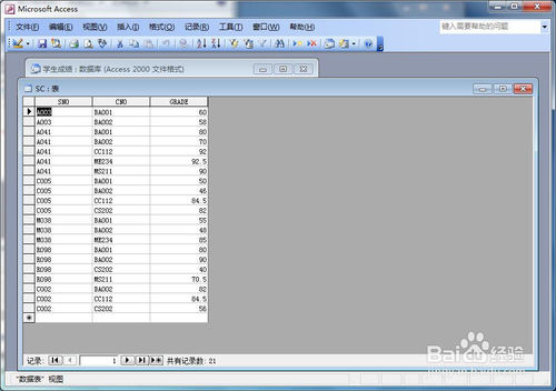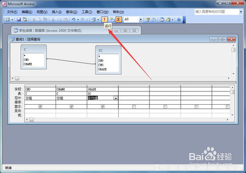一、創(chuàng)建總計(jì)查詢的方法首先打開我們的數(shù)據(jù)庫文件。小編示例的數(shù)據(jù)庫有三張表,C表表示課程表,里面有2個(gè)字段;S表表示學(xué)生表,里面有5個(gè)字段;SC表表示學(xué)生的選修表,里面有3個(gè)字段。表內(nèi)容如圖所示。表內(nèi)容搞清楚了,要?jiǎng)?chuàng)建查詢,當(dāng)然要單擊左側(cè)的“查詢”,如圖所示。