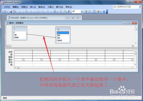 關(guān)系型數(shù)據(jù)庫的表不能是孤立的,要建立關(guān)聯(lián)。方法是:找到兩個(gè)表中相同字段,把該字段從一個(gè)表拖動(dòng)到另一個(gè)表的該字段處,會(huì)發(fā)現(xiàn)中間有連線了,代表兩個(gè)表已經(jīng)建立關(guān)聯(lián)了。