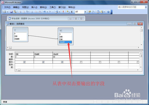 從表中把我們要查詢的字段用鼠標(biāo)雙擊,代表我們要輸出該字段查看。小編這里輸出了3個(gè)字段,如圖所示。