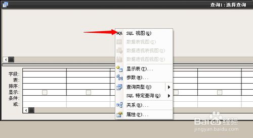 右擊剩下的窗口,選中“SQL視圖”就可以創(chuàng)建sql查詢刪除插入語句了,繼續(xù)看下面步驟