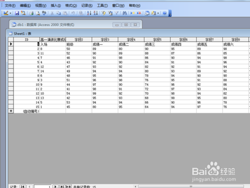 雙擊sheet1打開查看,你會(huì)看到excel中的數(shù)據(jù)就導(dǎo)入到access表中了。