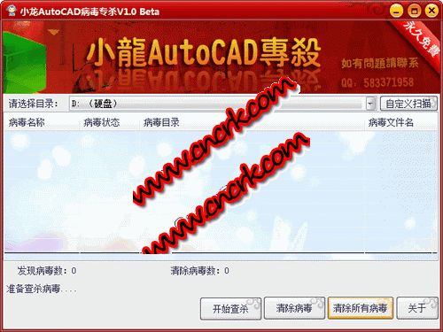 AutoCAD病毒專殺本程序永久免費(fèi)!cad病毒有別于傳統(tǒng)病毒,致使目前很多殺毒軟件對(duì)其無能為力,此工具可以幫您將cad恢復(fù)到正常狀態(tài)!