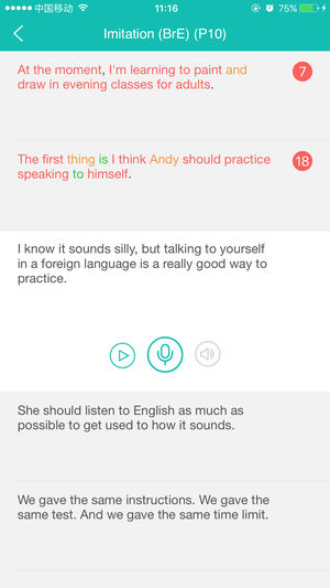 多樣課程,制作精良:課程種類不斷更新,優(yōu)質(zhì)資源可供選擇。外研專屬,品質(zhì)精良;口語(yǔ)訓(xùn)練,評(píng)測(cè)強(qiáng)大:口語(yǔ)訓(xùn)練支持跟讀、角色扮演等多樣的題型,用戶可隨時(shí)隨地進(jìn)行練習(xí),并通過(guò)系統(tǒng)提供的智能評(píng)分與回放功能,不斷挑戰(zhàn)自我,提升口語(yǔ)水平。