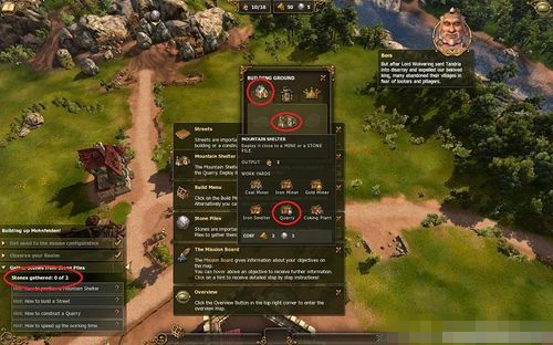 對(duì)空閑草地上單擊一下就會(huì)出現(xiàn)如圖所示建造面板,選擇第一級(jí)建筑中的礦場(chǎng)Mountain Shelter 可以發(fā)現(xiàn)多