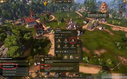 訓(xùn)練僧侶需要啤酒。可以看到普通居所Residence的附件中有啤酒,另外制造啤酒還需要小麥和水。所以還需要打開(kāi)面板建造一個(gè)水井。