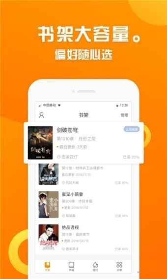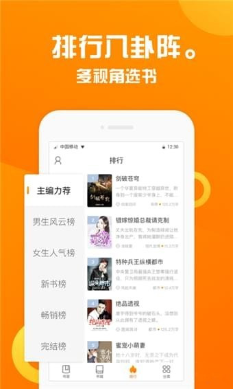 1.百萬書庫,種類繁多,品種齊全,玄幻、武俠、言情、都市、穿越、宮斗、歷史、軍事、熱門、網(wǎng)絡(luò)、經(jīng)典小說樣樣俱全;
