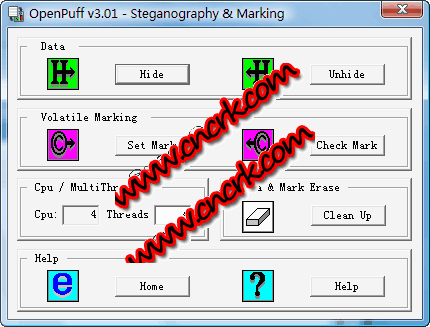 openpuff是一款高級的數(shù)據(jù)隱藏與水印工具,支持圖像/音頻/視頻/adobe flash ,以及exe、dll程序等。綠色版本,無需安裝解壓即可使用。你可以把需要隱藏的數(shù)據(jù)添加到一張圖片或是視頻中,軟件使用8種開源算法,512位加密,使用速度取決于你的cpu速度,支持最多64核cpu。