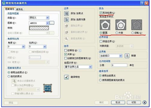 打開填充命令,快捷鍵是h,出現(xiàn)填充對話框,。一般大家就簡單的選擇好圖案填充了??墒菚霈F(xiàn)簡介里的問題。