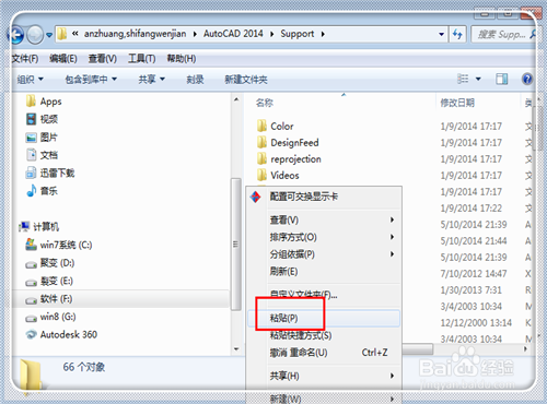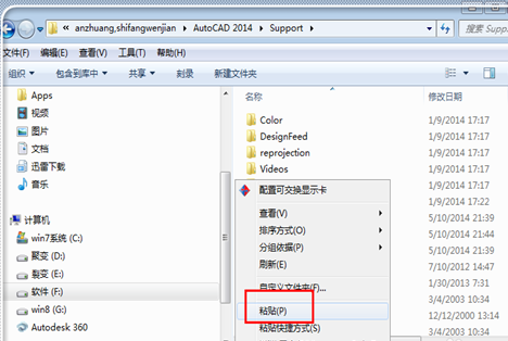 5、進(jìn)入“support”文件夾中,使用“ctrl+V”或者是右鍵點(diǎn)擊,選擇“粘貼”,將文字粘貼到里面。