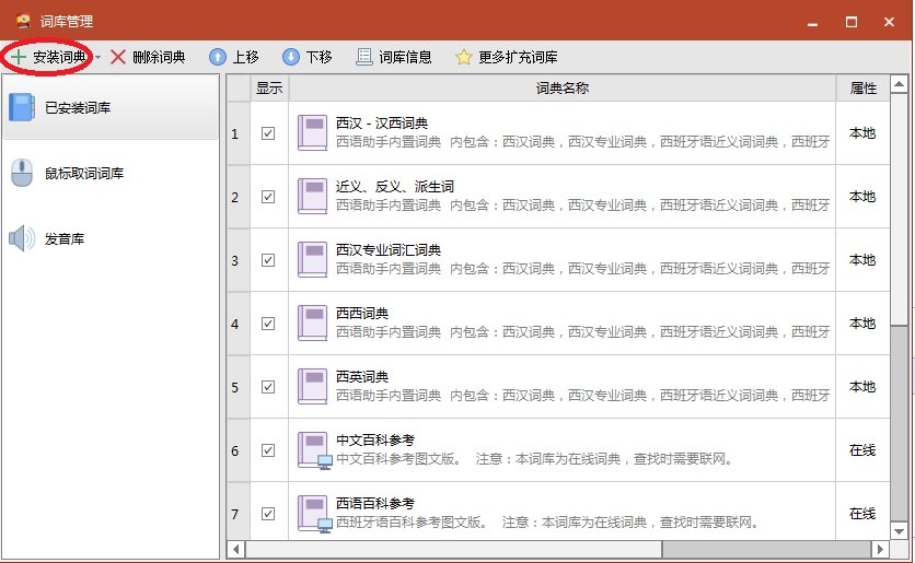內置多本西語權威詞典